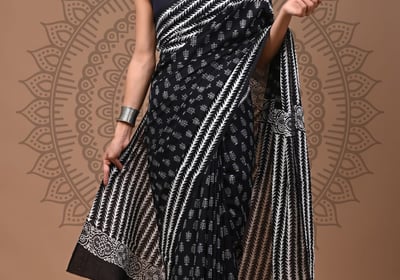 Explore sustainable sarees and curated wear supporting small weavers and artisans.